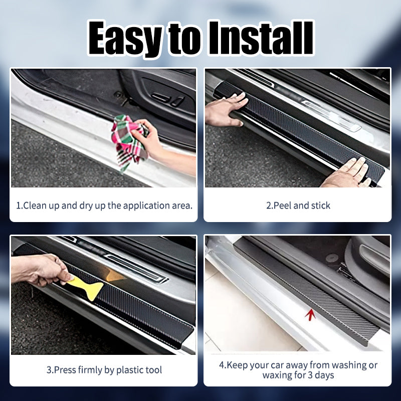 - Materiale af høj kvalitet: 4D kulfiber sort klistermærke. Afdækningen til dørtærsklen er lavet af vinylfilm med kulfiberstruktur, vandtæt og modstandsdygtig over for høje temperaturer. Efter flere tests ved høje temperaturer og på regnfulde dage fandt vi ud af, at det ikke smeltede og revnede. Høj kvalitet er vores mål, og vi tror på dig.